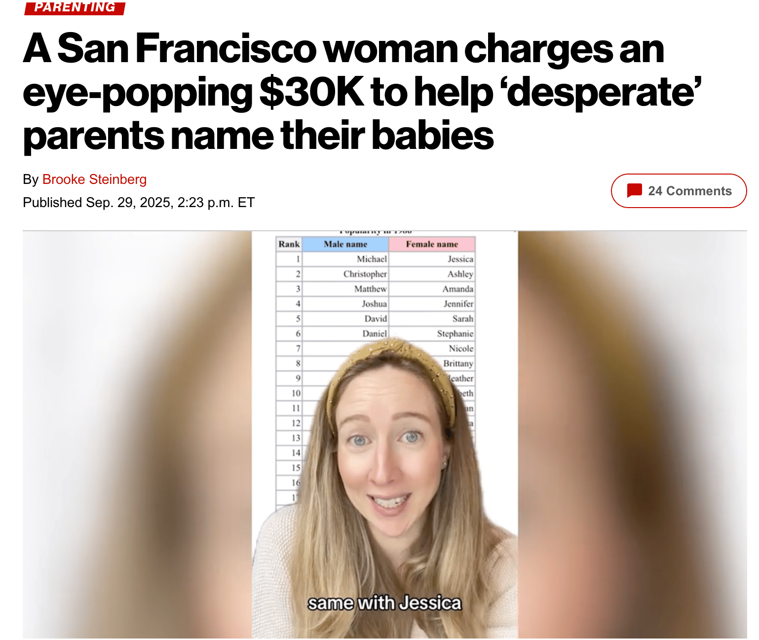 Do baby names matter? Yes, a little bit. Studies show identical resumes with different names receive different callback rates. They shape first impressions before personal interaction overrides the signal. Narrative identity theory suggests people grow by editing the story others began for them. But it is a little crazy when you see baby naming in action.